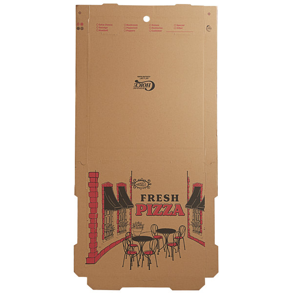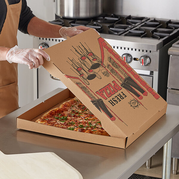 La pizza es uno de los artículos más comunes y más vendidos de los proveedores de alimentos. Si está ofreciendo reparto de pizza a domicilio y en diferentes lugares, necesita una caja de pizza adecuada para ello. Debe cubrirse completamente y prepararse con un material grueso para mantener el alimento interno a salvo del aire y los gérmenes. Los ciclistas necesitan tiempo para entregar las cajas de pizza en diferentes lugares. Un poco de aire endurece y congela el queso. Esto puede arruinar la calidad de tu artículo. Compra nuestras cajas de pizza personalizadas para tus tiendas o servicios de catering a domicilio. Mantenga su alimento fresco y en su forma original durante mucho tiempo. Estamos preparando cajas de pizza en diseños y colores únicos. La entrega de pizzas es algo común y está disponible en muchas tiendas. Haz que tu pizzería sea más atractiva y única. Mejore su estándar utilizando nuestras cajas de pizza personalizadas. Podemos proporcionarle estas cajas en cualquier cantidad. Contamos con cajas pequeñas o individuales, medianas y grandes o familiares.