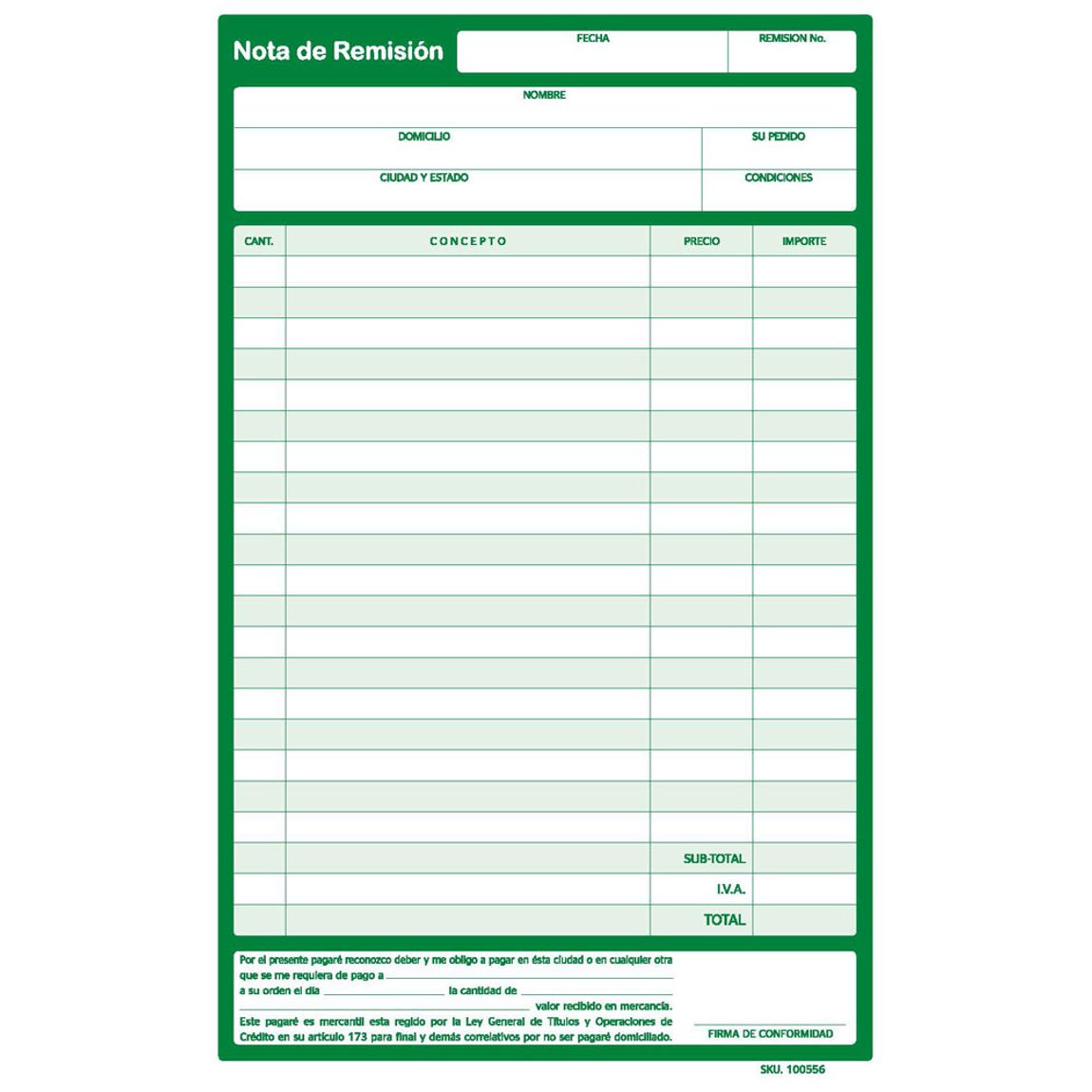 Nota de Venta o Remisión Media Carta
