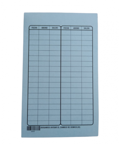 Tarjeta Abonero o Carta de Cobranza, precio por Millar (1,000 Pzs)